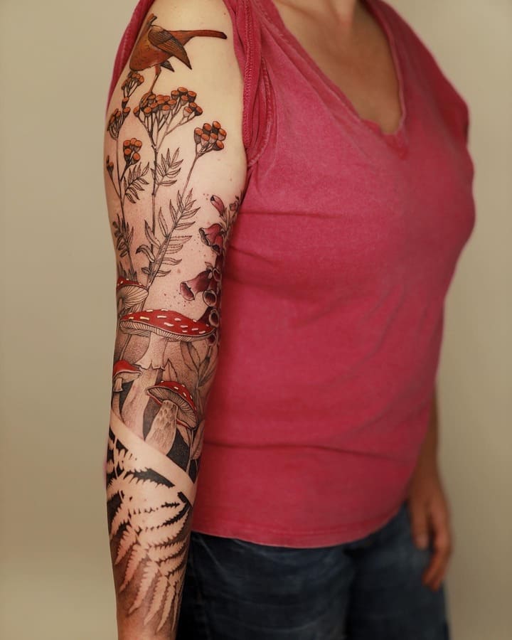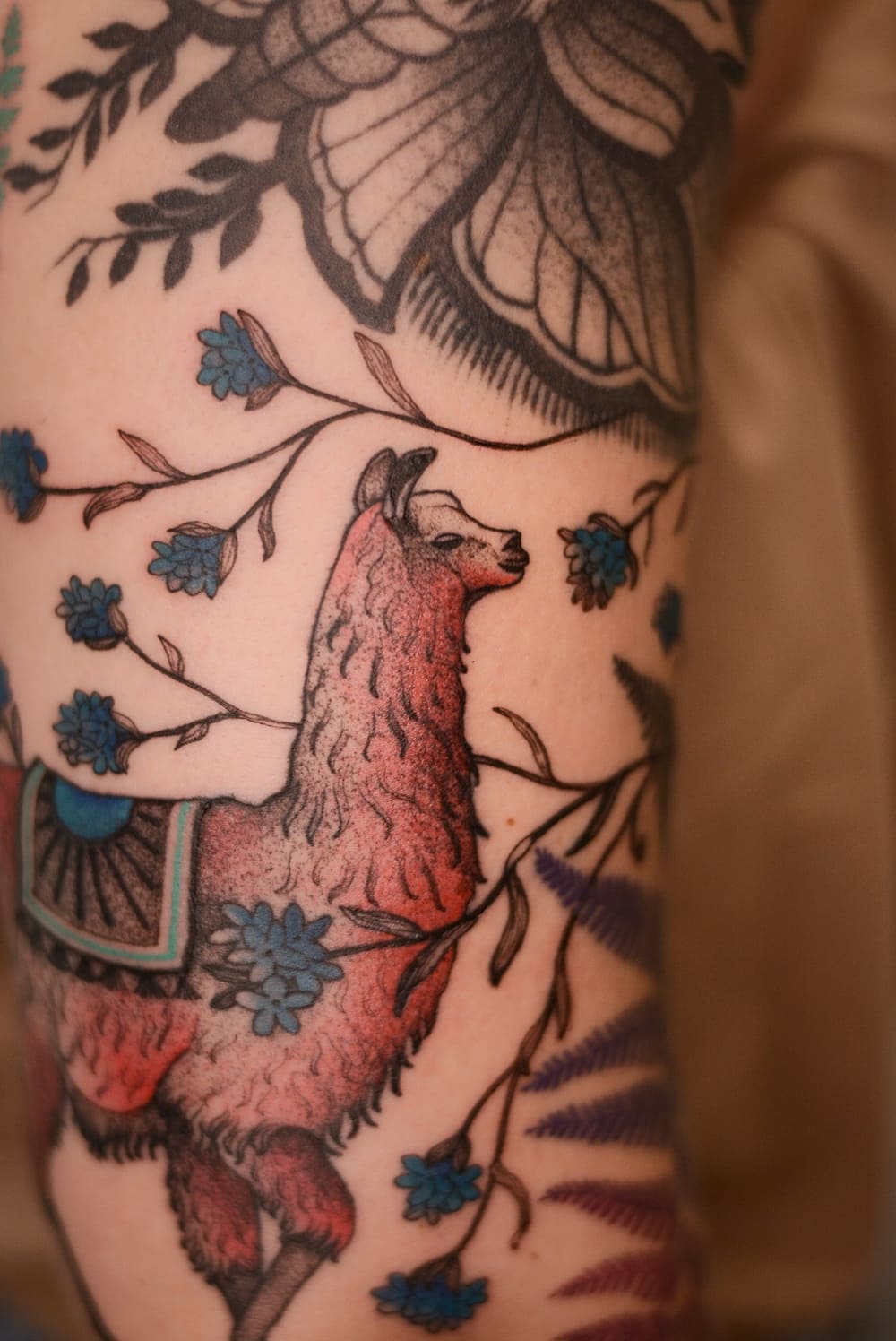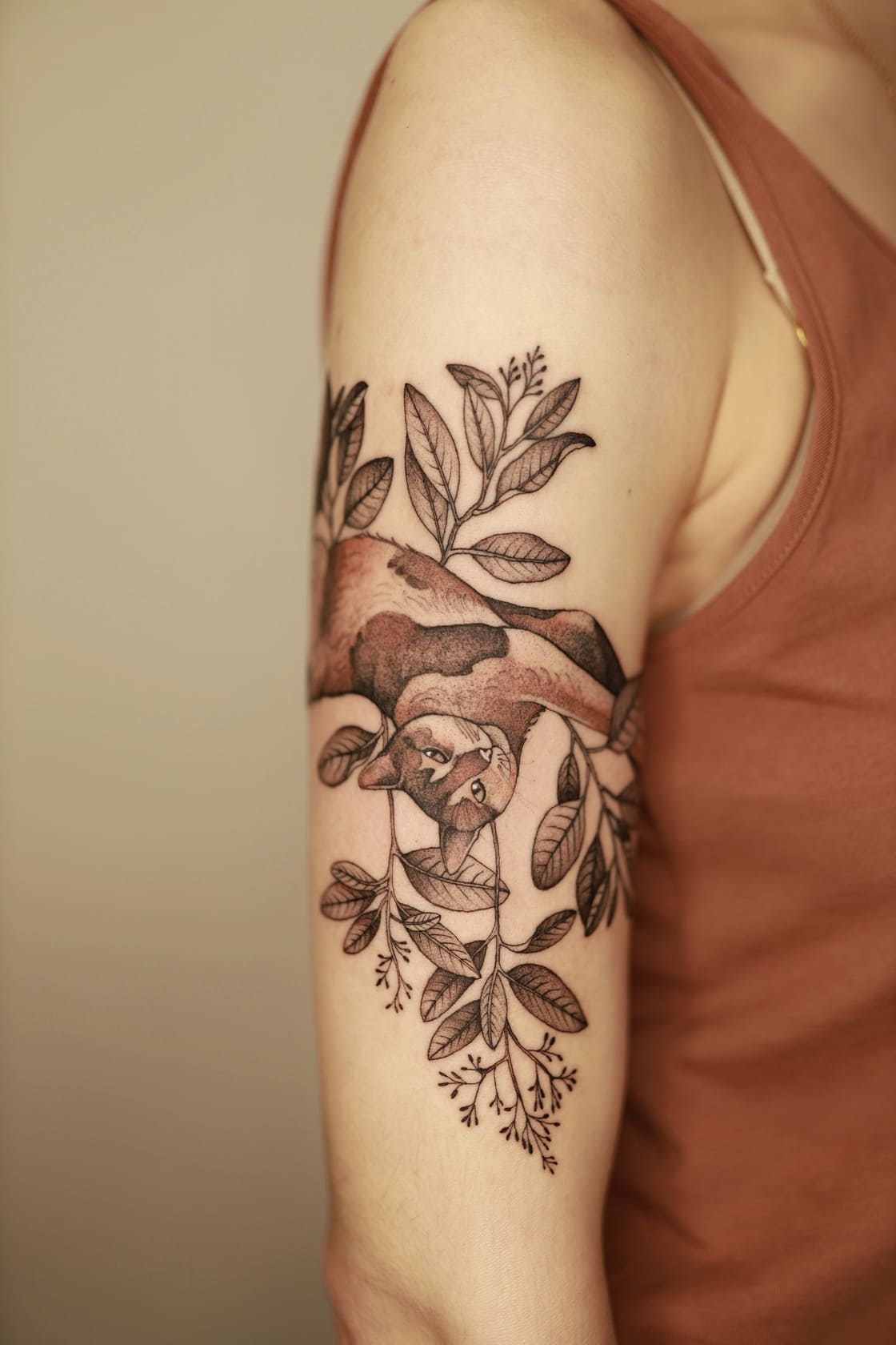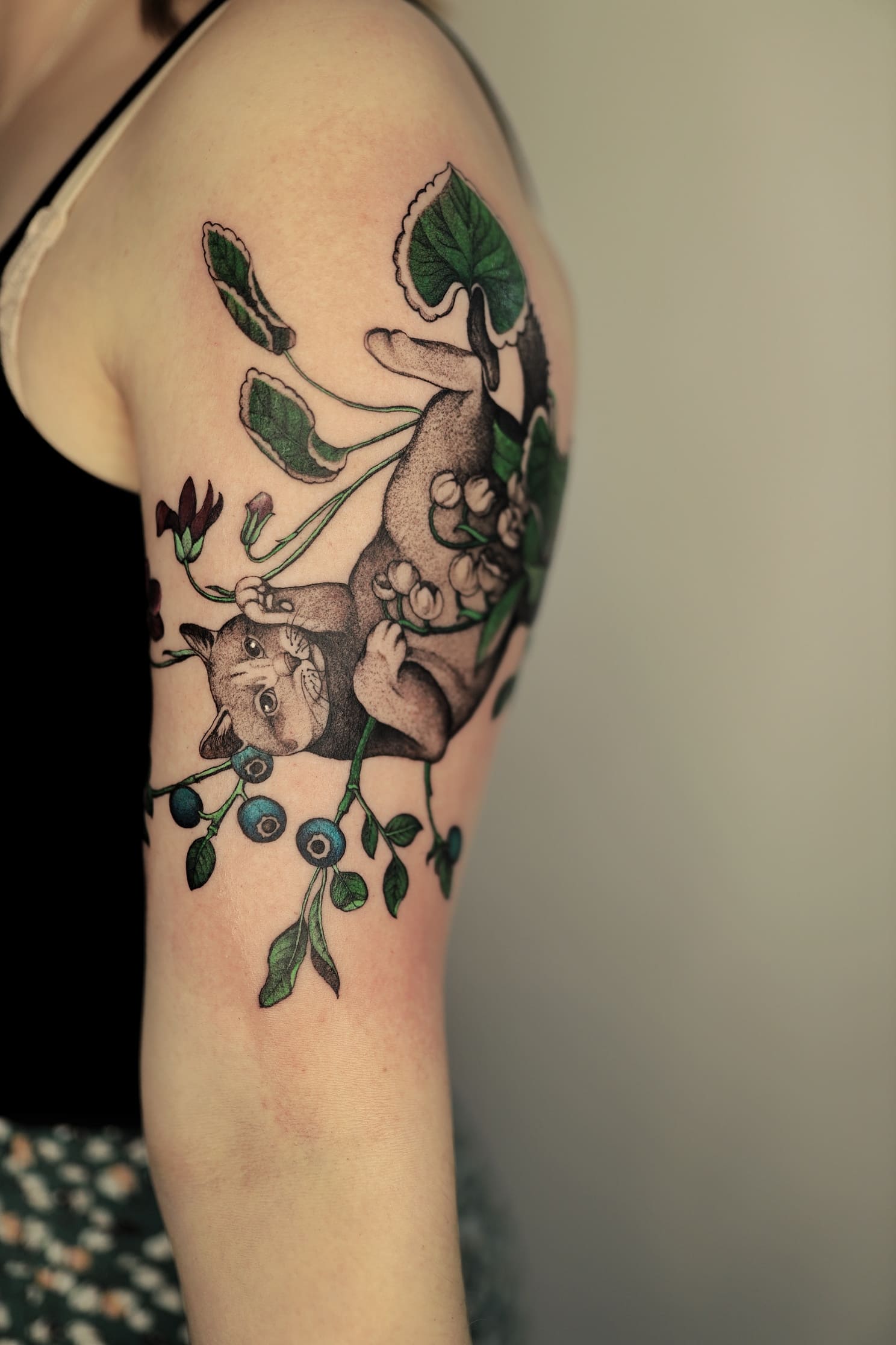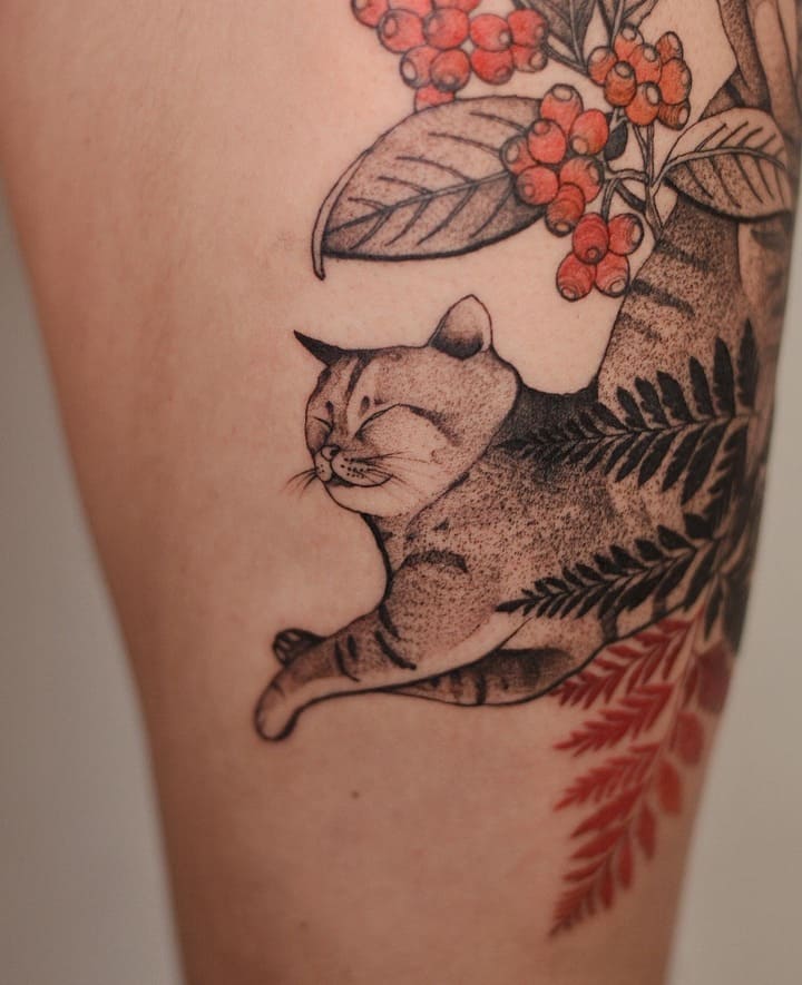 Botanical tattoos combine perfectly with other themes such as animals or abstract elements.