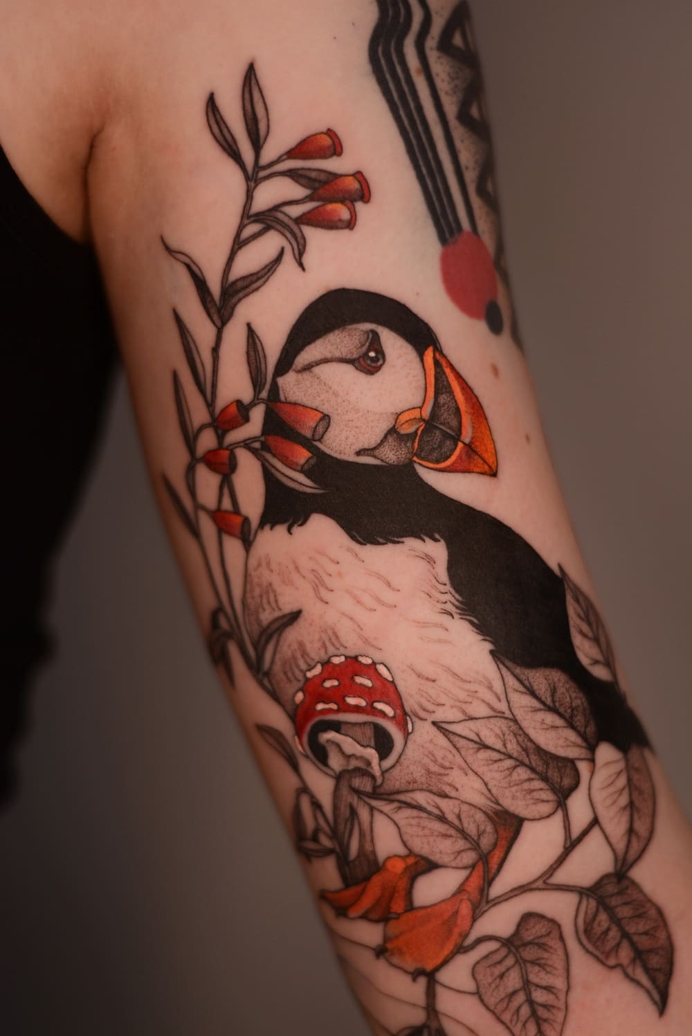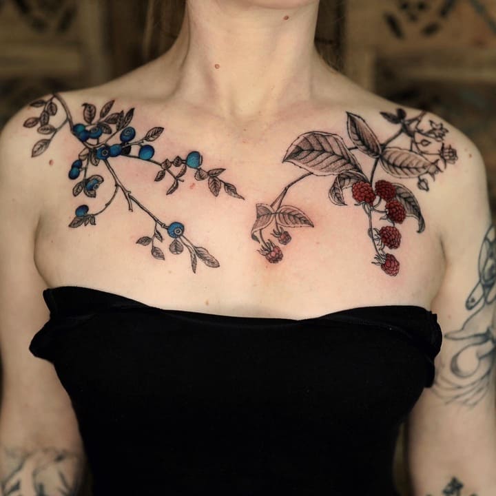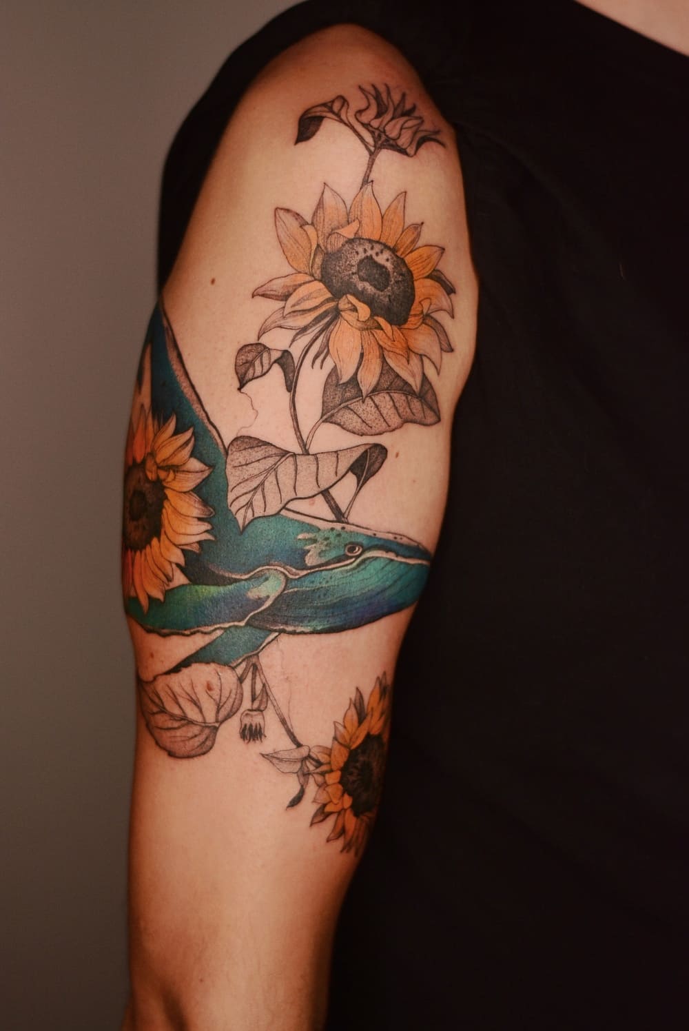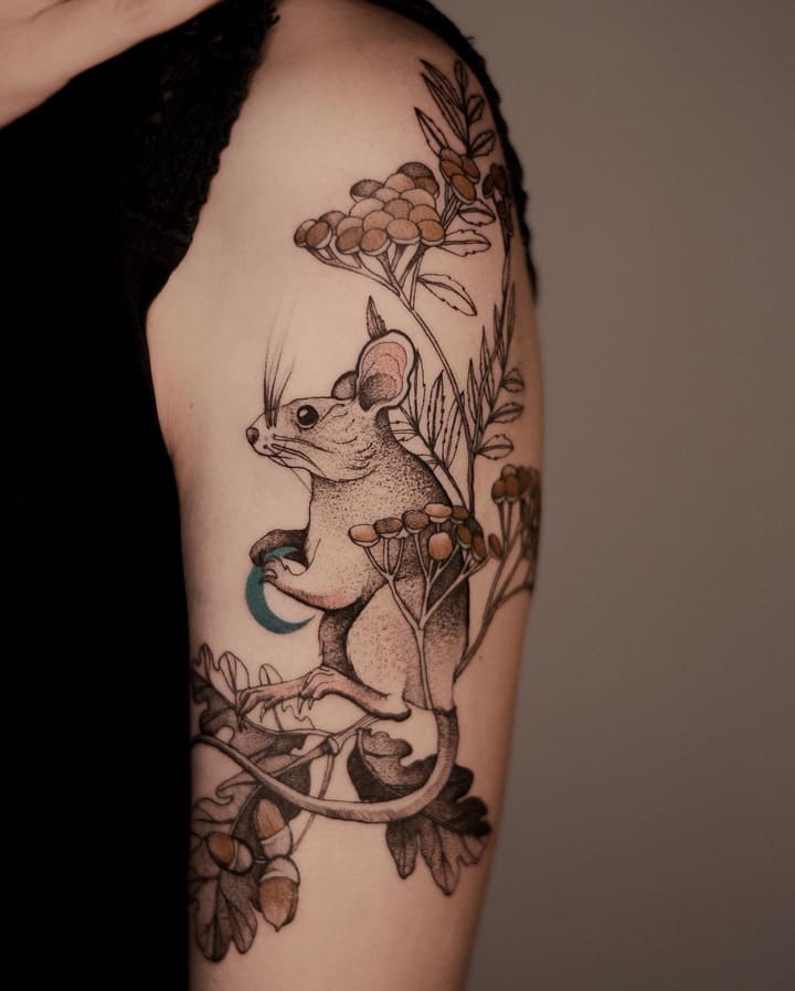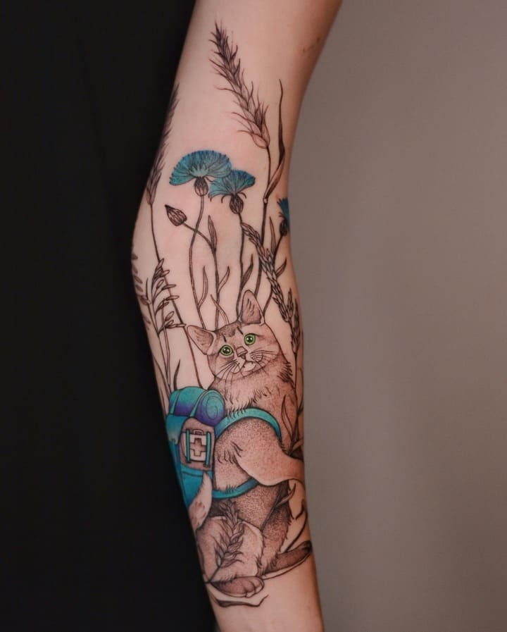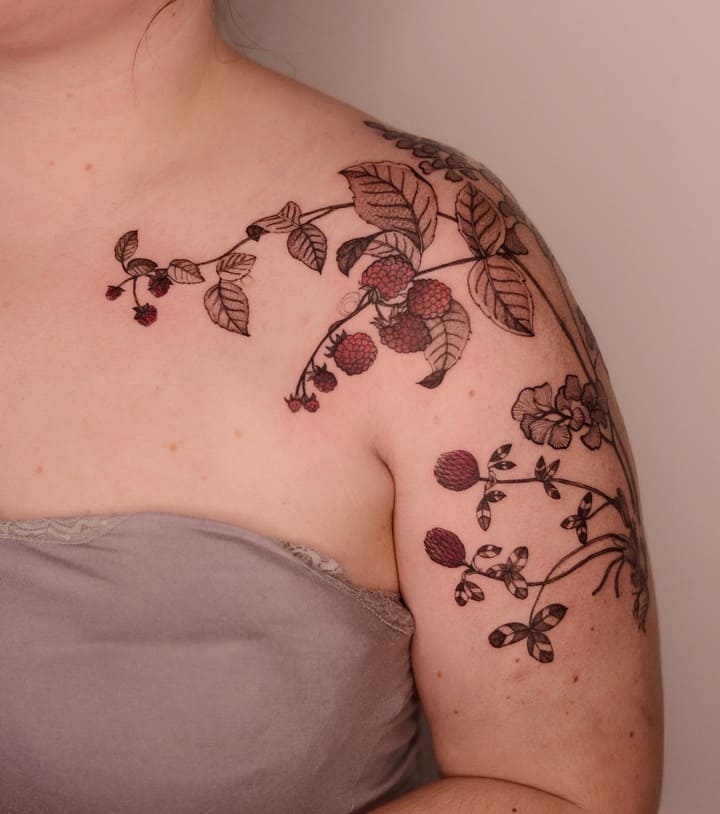 Botanical tattoos combine perfectly with other themes such as animals or abstract elements.