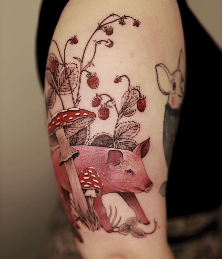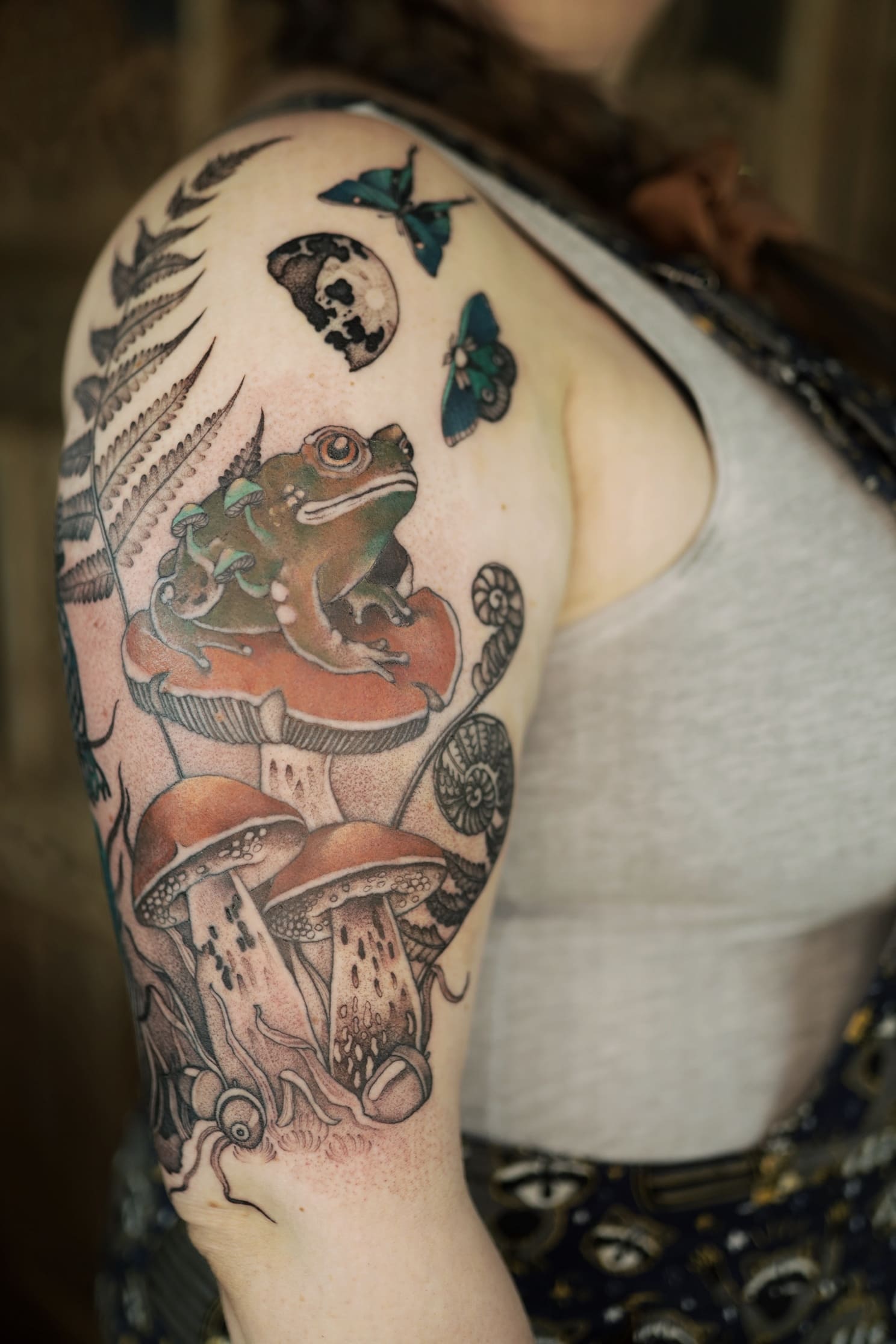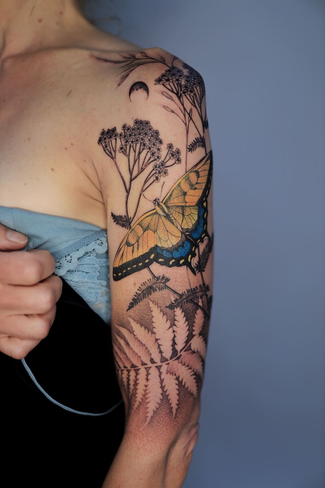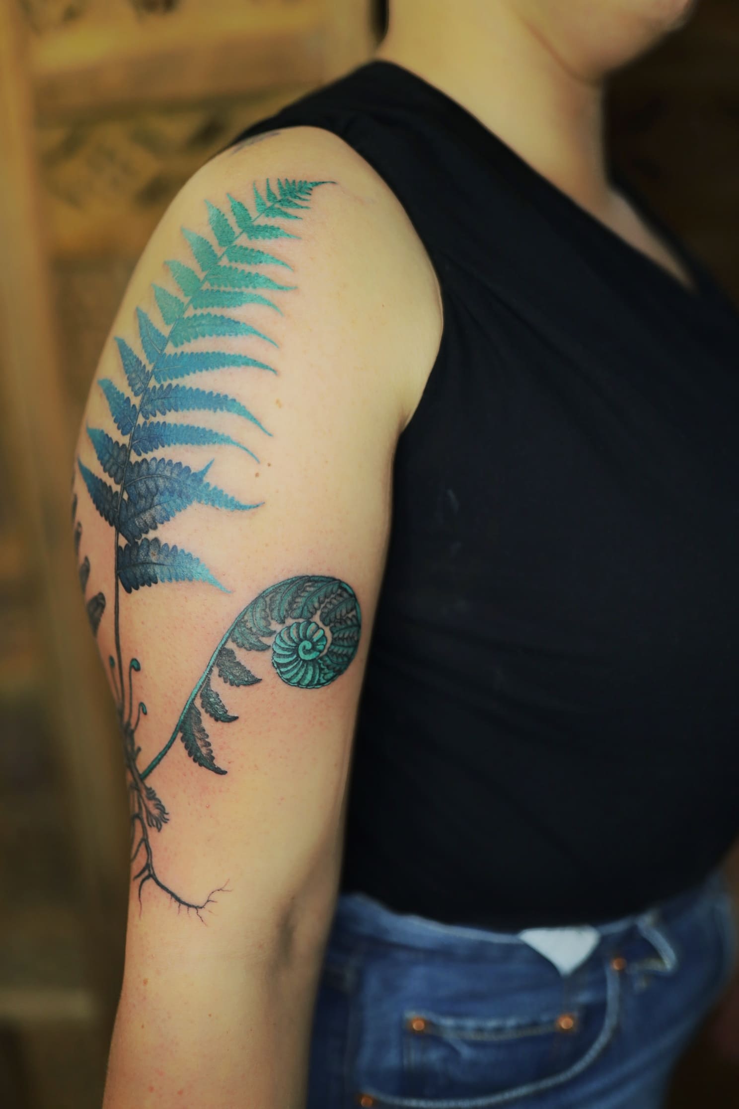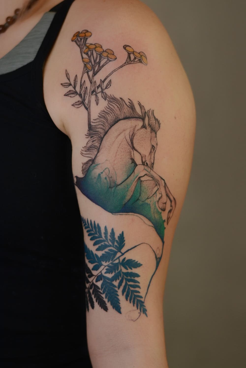 When creating botanical tattoos, I draw inspiration directly from nature – fern leaves, wild flowers, tree branches and the geometric rhythm of petals. I also often use my own garden at Amanita Art Village as a source of inspiration, where closeness to plants accompanies me every day. Thanks to this, each tattoo is not only a design on the skin, but also part of a greater story – a connection between human and nature.